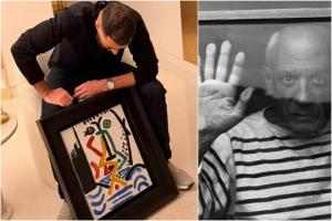 体育资讯12月22日讯 昨日本泽马在社媒晒出了自己与一副画作的合影,西媒《马卡报》报道指出,这幅画是毕加索在1964年所作。