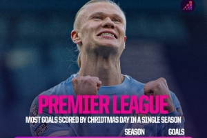 英超单赛季圣诞节前历史射手榜: